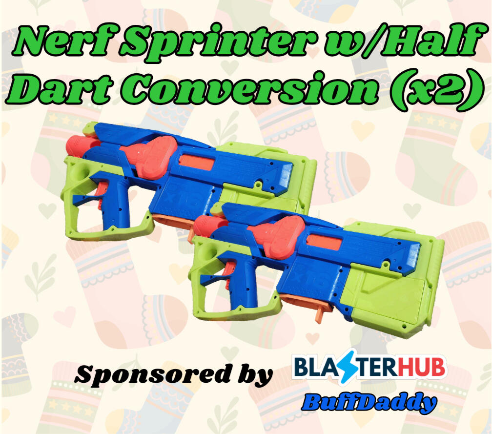 One of the OG's in the Nerf hobby. BuffDaddy has whipped up a couple of Nerf Sprinters fitted with half-dart conversion kits, 42.5mm cage, Meishel 2.0 Motors, and Worker Wheels. All tuned to HvZ performance.