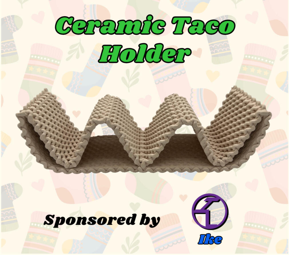 Designed, printed, and glazed by Ike, this 3D printed ceramic taco holder is food-safe and unique!